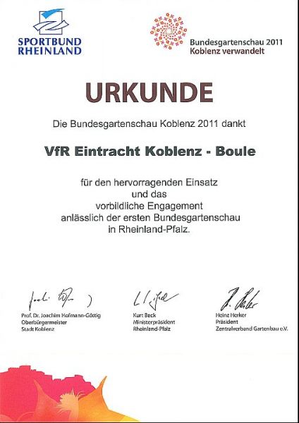 Die Boule-Abteilung erhielt eine Dankesurkunde
