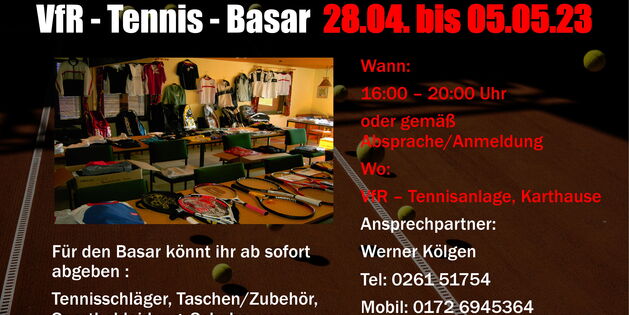 Bringt bitte Euren Tennisschläge und Tenniskleidung mit. Sollte das Wetter für diese Veranstaltung nicht geeignet sein, würden wir uns im Laufe des Vormittages am 30.04.2023 bei Euch melden.