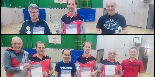 Am 9.12.24 fanden die Vereinsmeisterschaften im Einzel und Doppel statt. Gestartet wurde mit den Einzelwettbewerben, bei denen es nach einer Gruppenphase in die Viertel- und Halbfinals ging, und schließlich im Endspiel und im Spiel um den 3. Platz die Meister ermittelt wurden. Im Endspiel siegte erneut Fabian Fritzer(m), der Roberto van der Gang (l) besiegte. Im kleinen Finale konnte sich Achim Weigel (r) gegen Kamil Maasri durchsetzen.