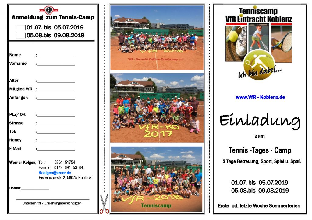 Das VfR - Tenniscamp für dieses Jahr findet in der ersten sowie letzten Woche der Sommerferien 2019 statt. Nähere Informationen können dem folgenden Flyer entnommen werden.